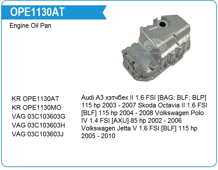 Поддон масляный ДВС OPE1130