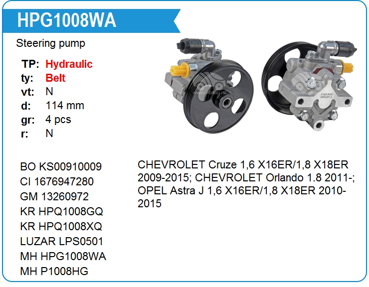 | Motorherz | HPG1008WA | Насос гидроусилителя руля | МСК | 1 | да | 14 500,00 руб. |