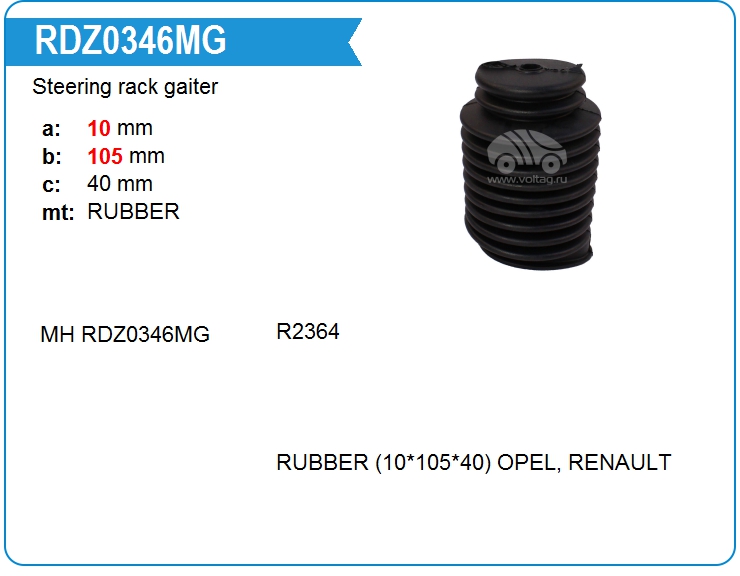 Пыльник рулевой рейки RDZ0346MG