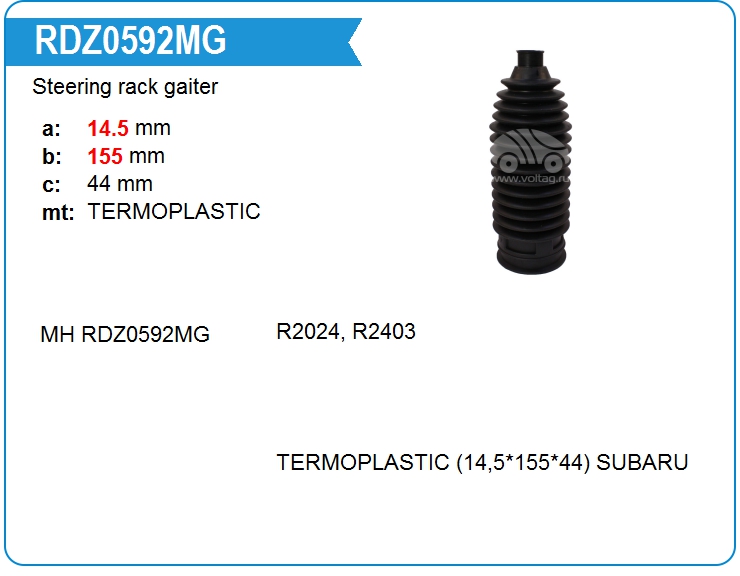 Пыльник рулевой рейки RDZ0592MG