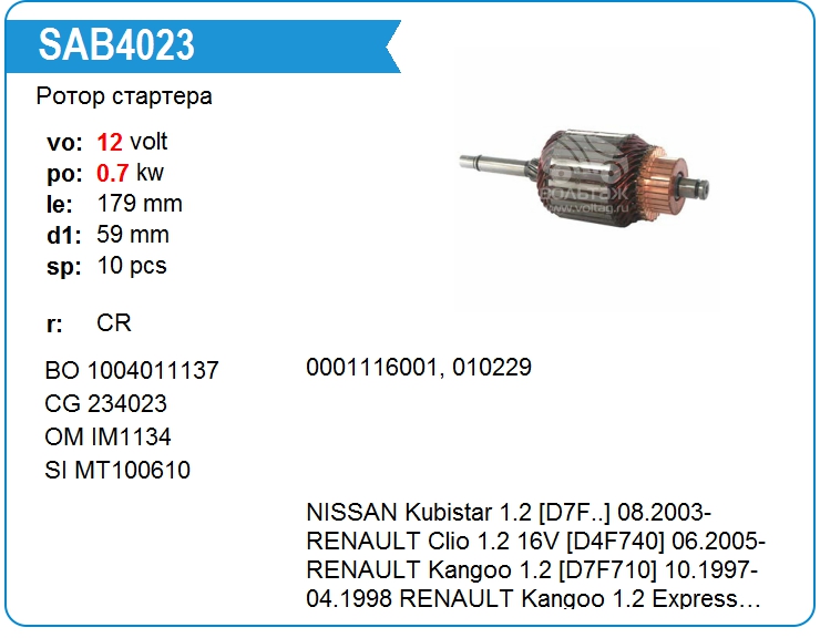 Ротор стартера SAB4023