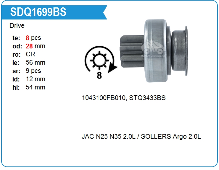 Бендикс стартера SDQ1699