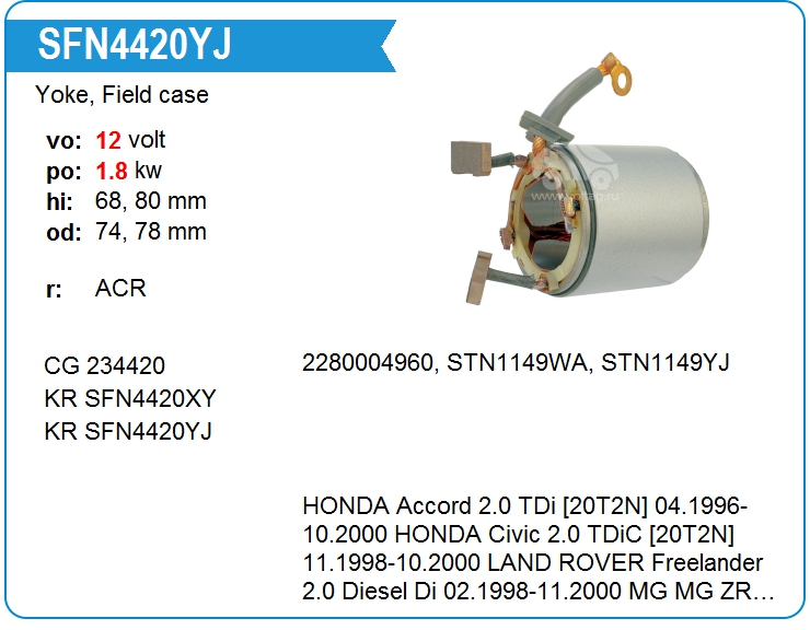 | KRAUF | SFN4420YJ | Статор стартера со стаканом | ЕКБ | 1 | да | 6 300,00 руб. | |