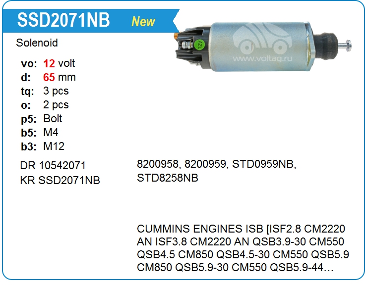 Втягивающее реле стартера SSD2071