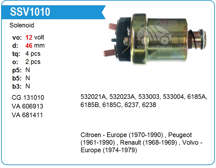 Втягивающее реле стартера SSV1010