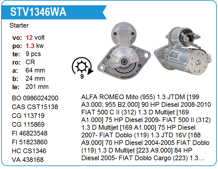 | Motorherz | STV1346WA | Стартер | нет | звоните | |||