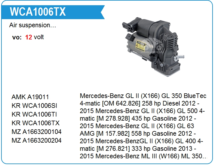 | KRAUF | WCA1006TX | Компрессор пневмоподвески | МСК | 1 | да | 32 400,00 руб. |
